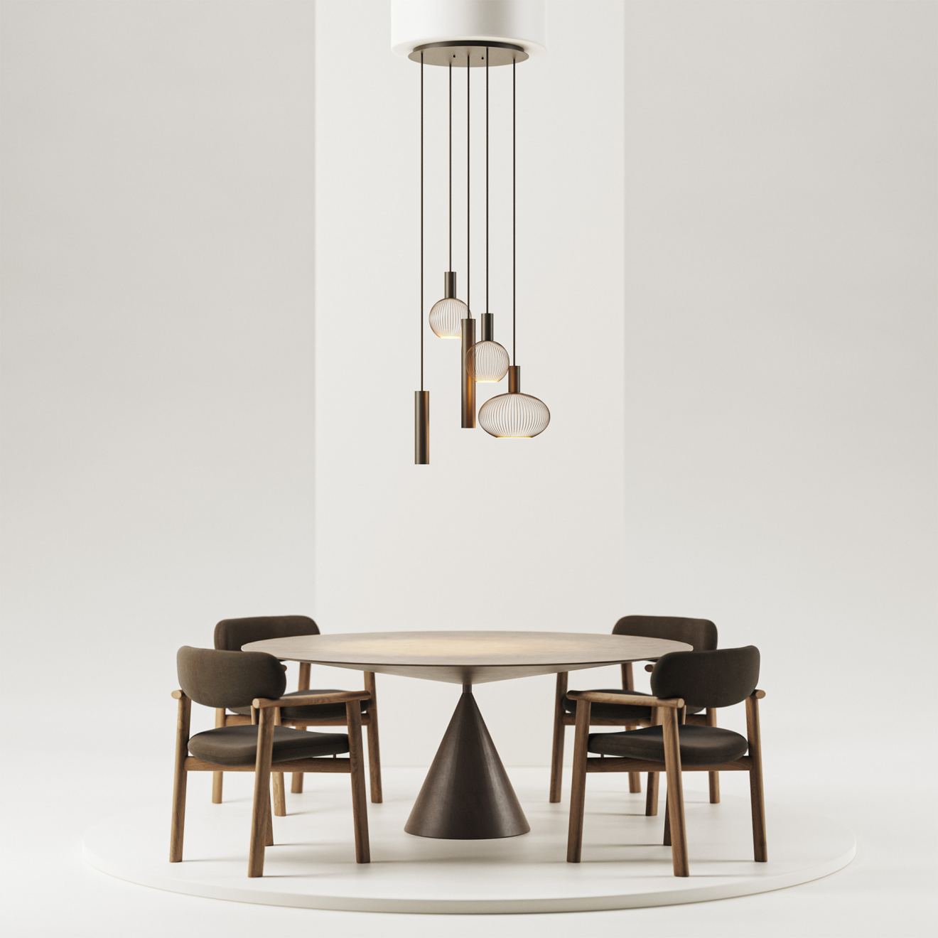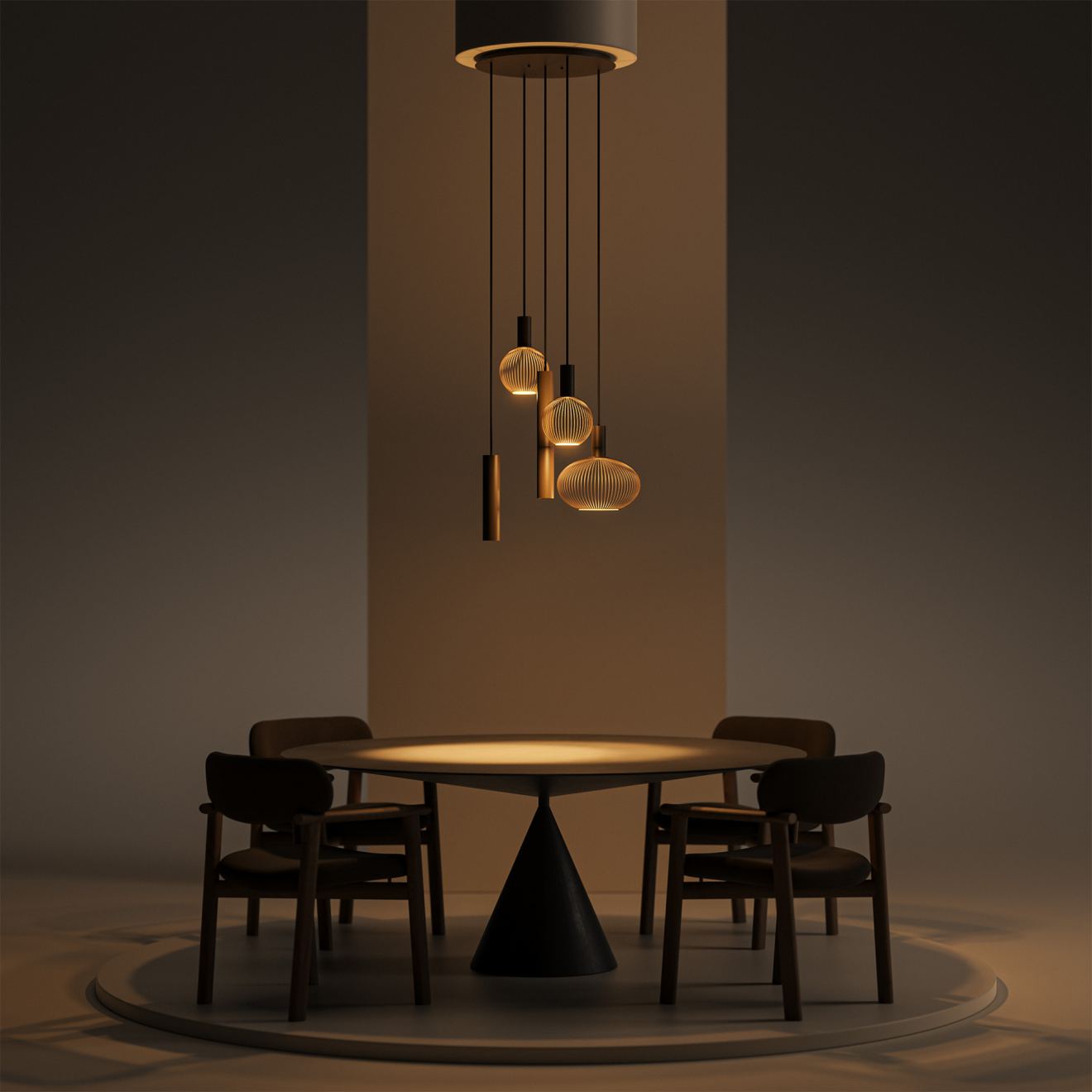 Como 9120 komt het best tot zijn recht boven een ronde eettafel. Overdag vormt het armatuur een rustig middelpunt, ’s avonds brengt het warmte en sfeer zonder te overheersen.