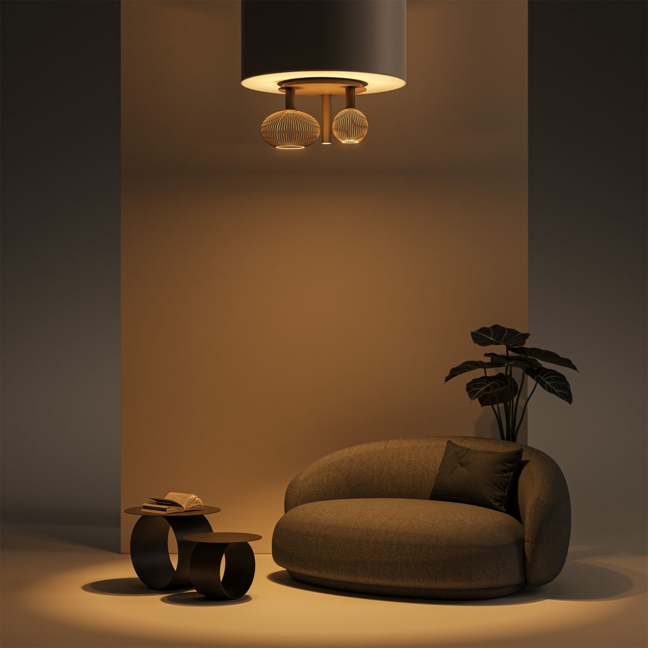 Como 9160 is geschikt voor ruimtes waar een rustige basisverlichting gewenst is, zonder de aanwezigheid van een hanglamp. Denk aan een eetruimte met beperkte hoogte, een hal of een leefruimte waar het plafond strak moet blijven. Overdag vormt het armatuur een rustig middelpunt, ’s avonds brengt het warmte en sfeer.